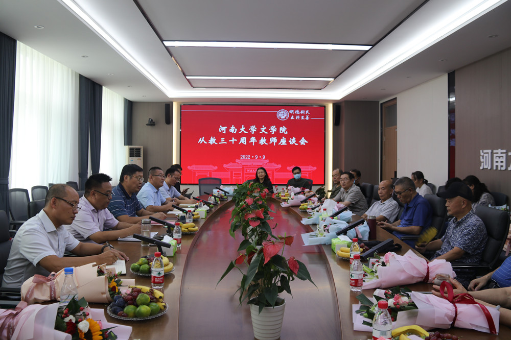 9月9日晚,文學(xué)院從教三十周年教師座談會(huì)在二樓會(huì)議室召開。與會(huì)十幾位教齡三十年及以上的教師紛紛分享了自己教學(xué)的心得體會(huì)以及對(duì)學(xué)院學(xué)科建設(shè)發(fā)展的建議。本次座談會(huì)旨在于教師節(jié)來(lái)臨之際對(duì)學(xué)院教師為學(xué)院發(fā)展作出的貢獻(xiàn)與努力表達(dá)感謝與敬意。